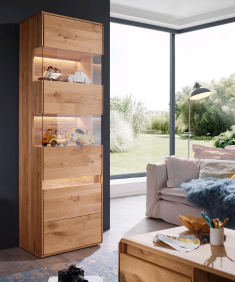 Vitrine I Eiche massiv Sandgestrahlt ,B 63 cm Höhe 207 cm Inkl. Beleuchtung